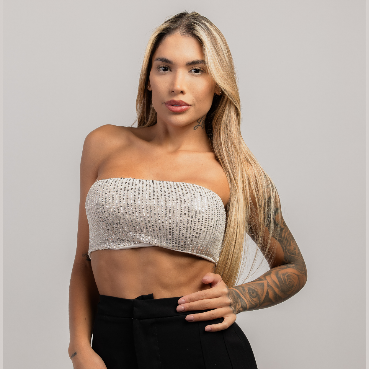 Top faixa em paetê com brilho intenso e caimento perfeito. Um toque de glamour e elegância para arrasar em qualquer ocasião. ✨